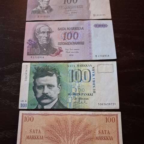 1, 50 ja 100 mk setelit