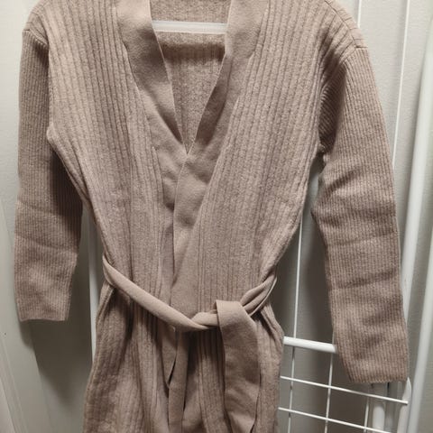 Hallhuber villa-kashmirneule näyttävällä kääntökauluksella, koko S. Pitkähkö malli. Kohtalaisen nukkaantunut mutta ihanan pehmeä, itselle liian tiukka. Materiaali 95 % villaa ja 5 % kashmirvillaa!