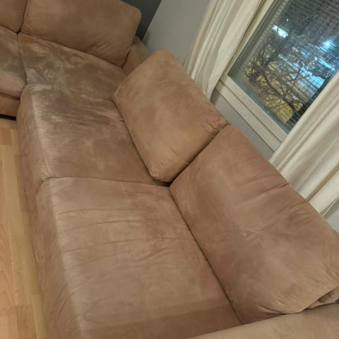 Kunto on erinomainen: kankaat ovat ehjät ja tahrattomat, ja sohva on edelleen jämäkkä ja ryhdikäs istua. Sohvan hinta uutena ostettuna oli 685 €, joten tästä uudenveroinen sohva edullisesti!