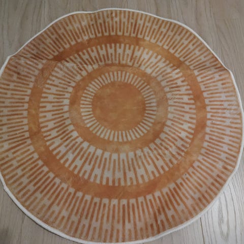 Puoliympyrä Matto printillä. Todella pehmeä ja ihana. Koko halkaisija 80cm ja ylipuoliympyrä 45cm.