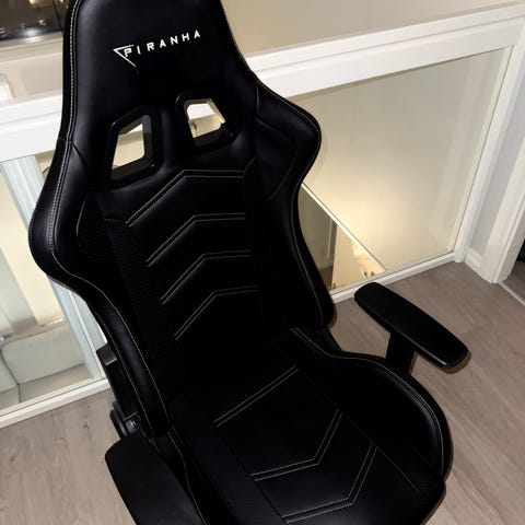 Piranha pelituoli ollu käytössä pari vuotta, mitään vikaa ei ole paitsi että lähteny päältä pikku nahka palanen mikä näkyy kuvissa.