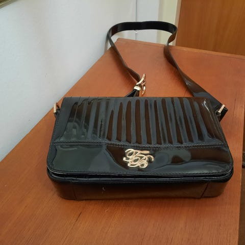 Ted Baker hennon vaaleanpunainen / puuterin sävyinen olkalaukku / yliolan laukku / crossover laukku / juhlalaukku. Sisällä vetoketjullinen tasku & toinen pikkutasku ja kullanväriset metalliosat. Mitat leveys 21 cm, korkeus 14 cm / noin 72 cm ja syvyys noin 3 cm. Materiaali PVC & vuori polyesteria. Sävy tosi hyvä vaalea puuteri vaaleanpunainen ja itse sain aikanaan tällaista sävyä etsiä pitkään. Pituus täydellinen lantion kohdille olkalaukkuna tai yliolan ja säätövaraa on jonkin verran eli riittävän pitkä eikä jää ärsyttävästi vyötärön tuntumaan. Hihnassa löysin tarkalla tutkiskelulla pari haaleaa jälkeä, yhdessä kohdassa reunassa pieni jälki (ks 2 vikaa kuvaa) ja hihna naulakossa säilytyksessä taipunut yhdestä kohtaa, muuten en löytänyt huomautettavaa. Muistaakseni Stockmannilta ostettu ja varmaan 2010-2015 välillä. Käytetty juhlissa joitakin kertoja ja nyt ei itsellä ole käyttöä.