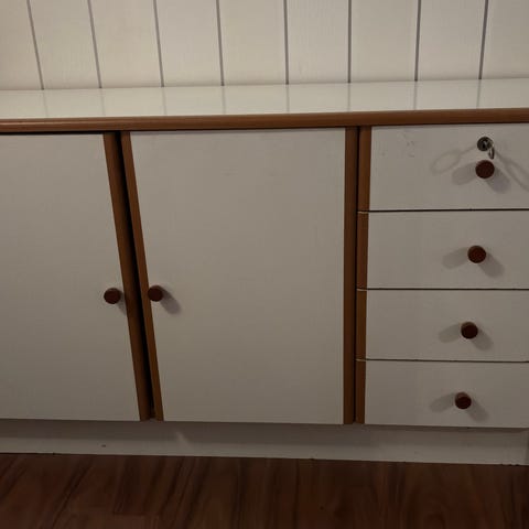 Erittäin hyväkuntoinen lipasto, keskellä 4 laatikkoa ja sivuilla kaapit. Mitat 120x80x35.