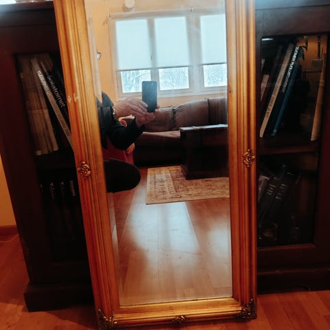 Iso peili, jonka alaosassa on kaksi laatikkoa, sekä pieni taso.