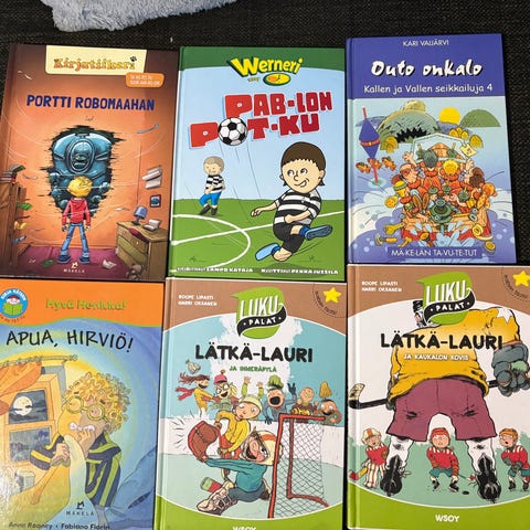 Seuraavalle pikkuiselle lukijalle 4kpl läppäkirjoja. Paljon luettuja mutta vielä ihan ok kuntoisia, luukut tallessa. Joitain teippauksia ja virheitä, näkyvät kuvissa. Koiratalous.