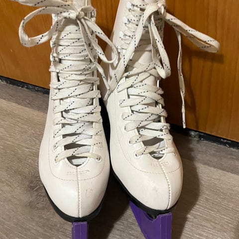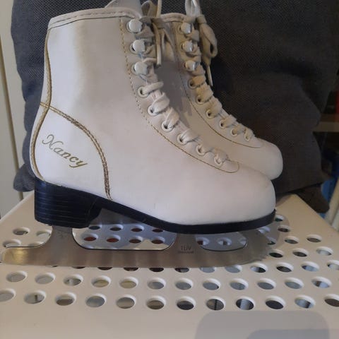 Nancy lasten luistimet, koko 36, valkoinen väri. Käytön jälkeä löytyy mutta edelleen hyvät ja tukevat luistimet seuraavalle käyttäjälle. Pienet viat kuvissa.