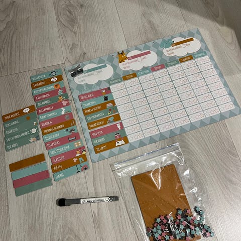 Hyvä kunto. Tussi puuttui,mutta mikä vain taulutussi käy. Nouto myllypurosta.