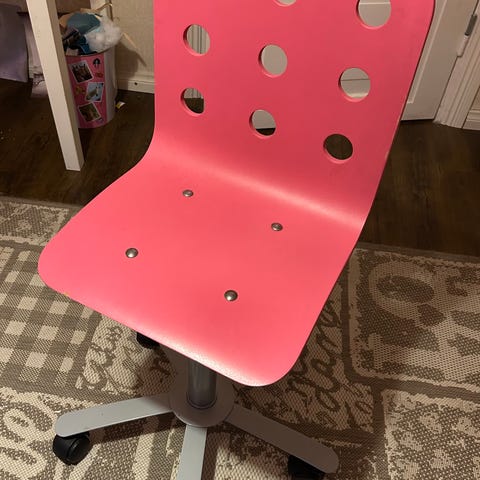 Ikea munatuoli, lasten suosikki 😊. Alunperin ollut punainen, maalautettu ammattikoululla valkoiseksi. Sittemmin varastossa maalit irtoilleet ja vaatii uudelleenmaalauksen. Tekniikaltaan kuitenkin ehjä. Lastenhuoneen piristys 😅
