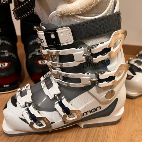 Käytönjälkeä on, mutta täysin toimivat monot seuraavalle laskijalle. Irroitettava sisäkenkä.