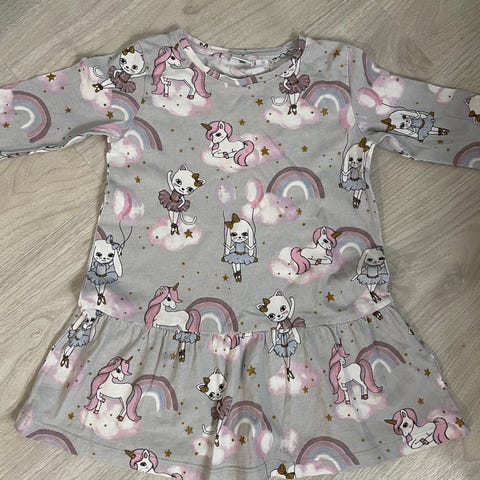 Lindex soma pilkkumekko koossa 110. Niskassa kaksi rusettia. Kunto oikein siisti.
