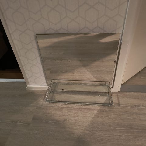 Peili, jossa on lasihylly. Täysin kunnossa.