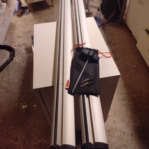 Uudenveroisessa kunnossa olevat kattotelineet. Käytetty muutamalla Lapin reissulla ja sisältää sarjat A ja B sekä 2 alkuperäistä avainta ja käyttämättömät suojalistat.