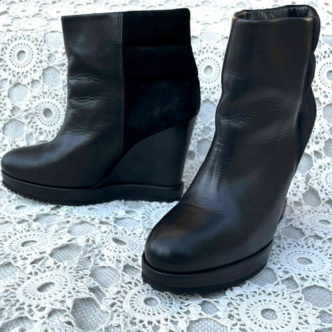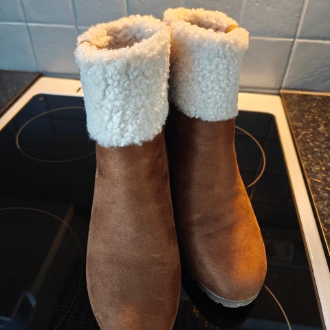 Mustat, ohuesti vuoratut, keinonahkaa, ehjät ja siistit, vain muutamia kertoja käytetty.