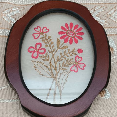 Persoonallinen ripustettava koristetaulu kolmella koukulla; esim. avainteline tai koruteline. Mitat n. 20cm korkea, 12.5com leveä ja sentin syvä.