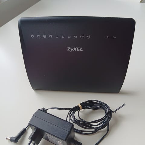 Zyxel reititin / modeemi, musta väri, varustettu kahdella antennilla ja mukana virtalähde. Laite on tarkoitettu langattomaan verkon jakamiseen ja tukee useita Ethernet-liitäntöjä. Laitteessa on WAN-liitäntä, 3 LAN-liitäntää sekä 2 USB-liitäntää. Malli NBG4615 v2. Tarvittaessa parin euron lisähintaan myös Ethernet-kaapeli. Tässä reitittimessä ei ole DSL-liitäntää, joten ei sovi vanhasta puhelinpistorasiasta tulevaan nettiin.