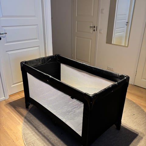 Myynnissä Emma-matkasänky, väri musta.