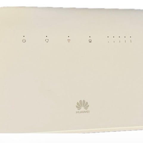 Huawei reititin valkoinen. 4G WLAN B315. Langaton verkkolaite, jossa on kaksi ulkoista antennia ja useita liitäntöjä takana (LAN, USB, TEL). Mukana virtalähde. Paikka SIM-kortille, eli toimii liikkuvan laajakaistan kanssa. Ohjekirja mukana.