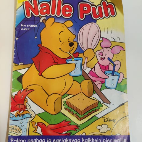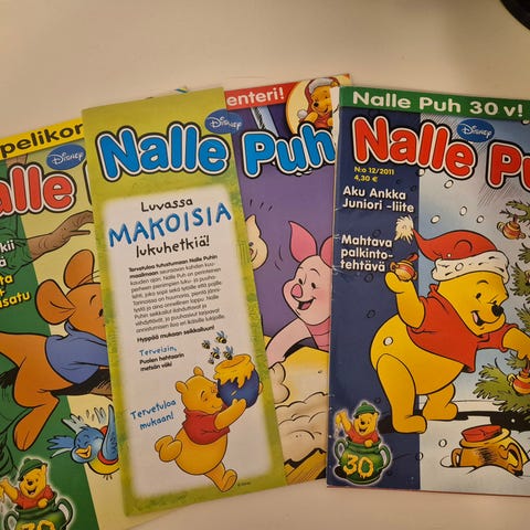 Nalle Puh lasten kirja, jossa on mukana tarinoita ja värikäs kansikuva. Kirja soveltuu lapsille ja sisältää tutun Nalle Puh -hahmon seikkailuja.