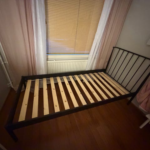 Myydään muuton tieltä 90cmx200cm kokoinen JYSK sänky ilman petauspatjaa.