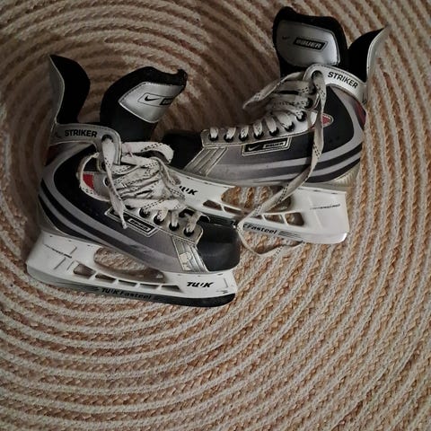 Koko 38,5. Toisessä luistimessa takaläpässä on vaurio. Ei estä käyttöä. (Näkyy kuvassa)