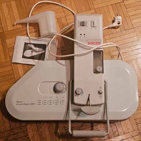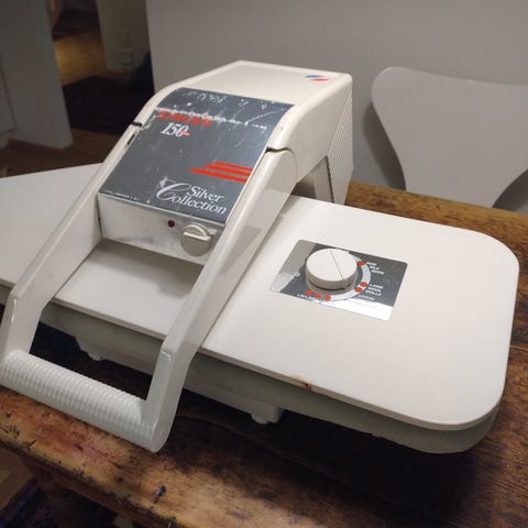 Vaatteiden/kankaiden prässäykseen kätevä prässi, vähän käytetty. Painava kone.