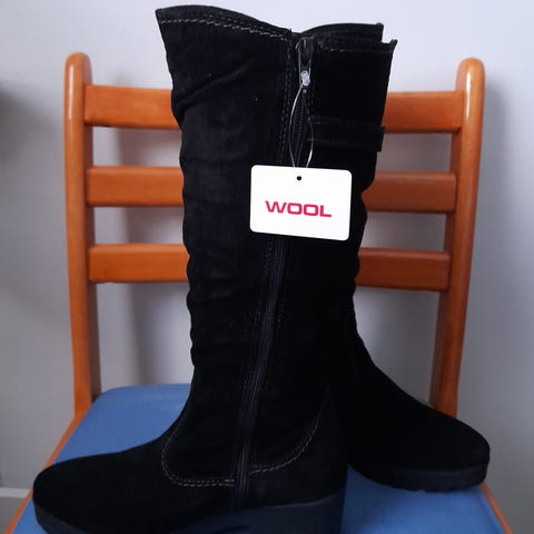 Aivan ihanat kärjen suuntaan kapenevat mokkanahkabootsit. Ulkoa mokkanahkaa, sisältä nahkaa.