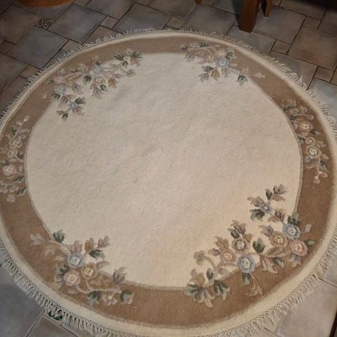Pyöreät värikkäät villamatot, halkaisija 1m. Näitä löytyy 2kpl. Erittäin siistikuntoiset ja puhtaat, kunnossa ei huomautettavaa. Laitan vielä pakkaseen tuulettumaan.