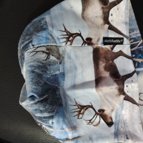 Suloinen vaaleanpunainen pipo. Hempeän vaaleanpunainen ja harmaan värit. Tupsussa heijastavaa hipsusia. Sisäpuolella lämmin fleece vuori. Koko arvio 50.
