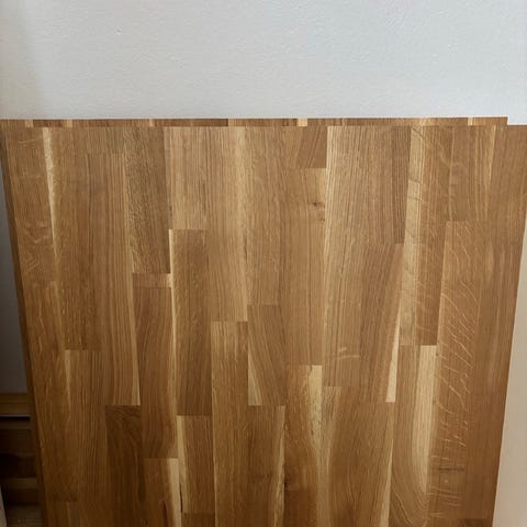 Tamminen työtaso/keittiötaso. Kunto hyvä. Yhdessä kohdassa pieniä kolhuja ja yksi viiru. Ks.kuvat