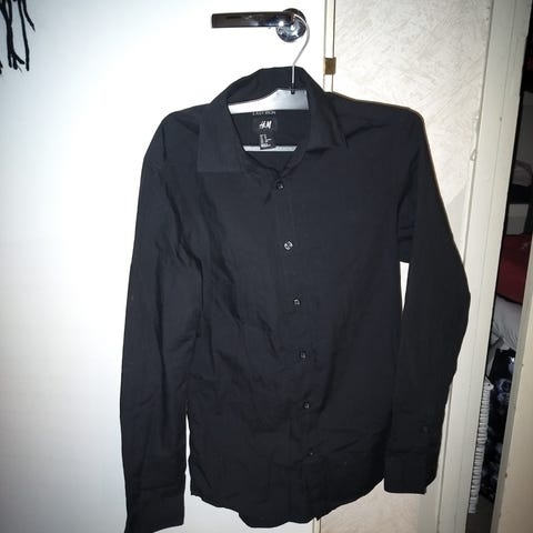 Musta tyylikäs rennompi H&M kauluspaita, näyttää olevan kokoa 44.