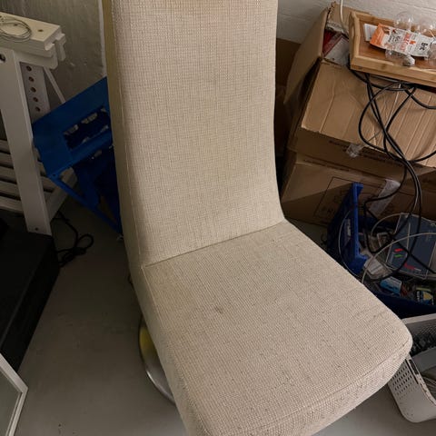 Maskun Colorado sähkömeganismi nojatuoli valkoisella verhoilulla. Tuolissa on pehmustetut käsinojat ja selkänoja. Sopii olohuoneen tai muun oleskelutilan kalusteeksi. Nojatuolissa on hieman tummia kohtia istuin kohdissa mutta muuten erittäin hyvässä kunnossa.