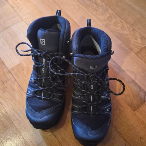 Hyvät kengät talven kävelyille, nastoja kaikki jäljellä ja niissä hyvin pituutta. Molemmat kengät kuluneet mulla sisäpuolelta jalkaa (kuvat) mutta muuten ei vikoja.
