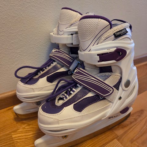 Graf lasten säädettävät luistimet koko 31-34. Hyvä kunto, ainoastaan karvan reunassa pientä kulumaa. Nouto Kangasala.
