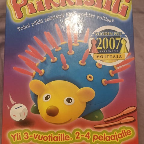 Piikkisiili lasten peli. Siililtä toinen korva irronnut, ei vaikuta peliin. Pakkaus kärsinyt.