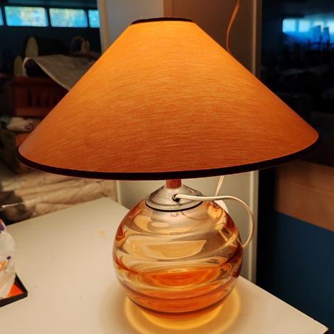 Hieno käsityöajan pöytävalaisin 1900-luvun alkupuolelta.