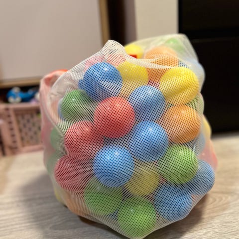 Pallomeripalloja, muutaman kerran ollut leikissä. 2 säkillistä + yksi pieni laatikollinen.