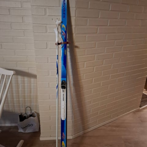 Lasten murtsikasetti. Sukset 126cm, sauvat 100cm. NNN-siteet. Suksipussi.