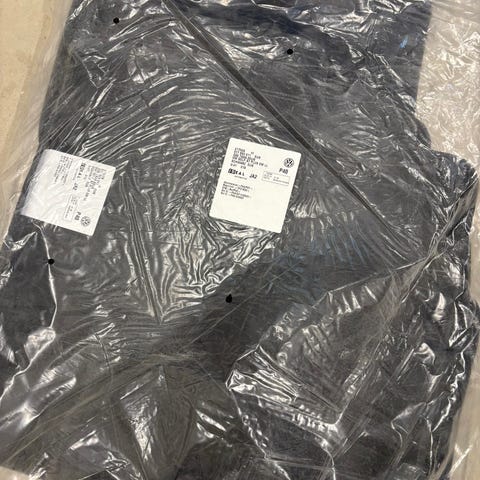 Myydään Käyttämättön Volkswagen Golf VII (A7) alkuperäinen kangasmattosarja tehtaan avaamattomassa pussissa.