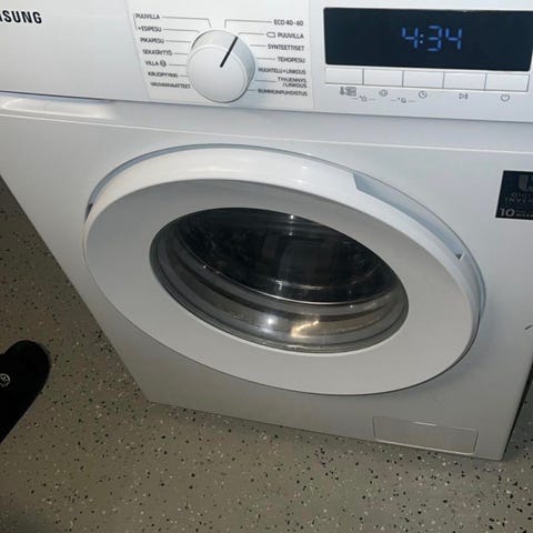 Toimiva kone. Pesee hyvin. Pääsee uuteen kotiin muuton ja uuden pesutornin myötä.