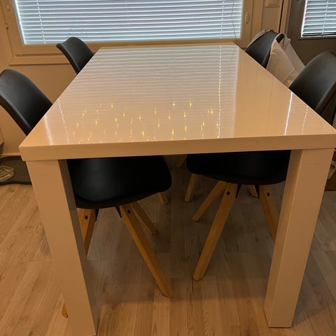 Myydään ruokapöytä ja 2 tuolia. Kannessa vähän kulumaa.