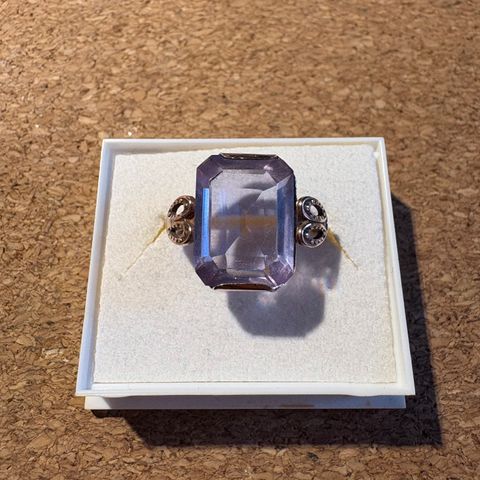 Suomalainen design hopea sormus ametistilla. Sormuksen ulkopuolella myös kaksi ruotsalaista leimaa?