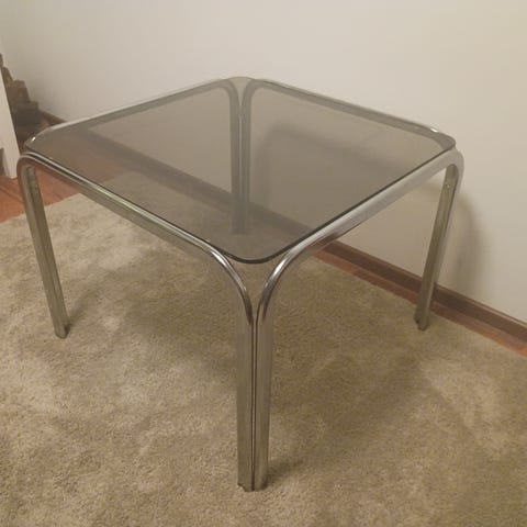 Kaksi lasista vintage sohvapöytää