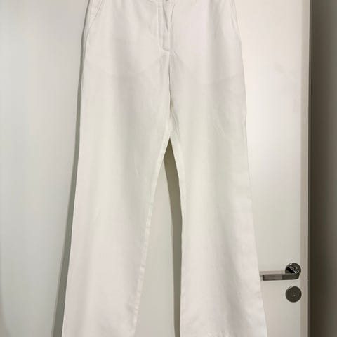 Ruskeat leveälahkeiset housut, pellavasekoitetta. Koko S.