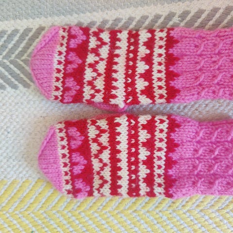 Käsin neulotut lapaset sopivat noin 2-vuotiaalle