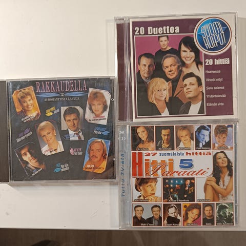 Suomalaista iskelmää 144 LEVYÄ. Kunnot aika hyvät. Voi tarjota koko kasasta. . Muuten hintojen mukaan. Kaikkiin tulee ehjät kotelot !