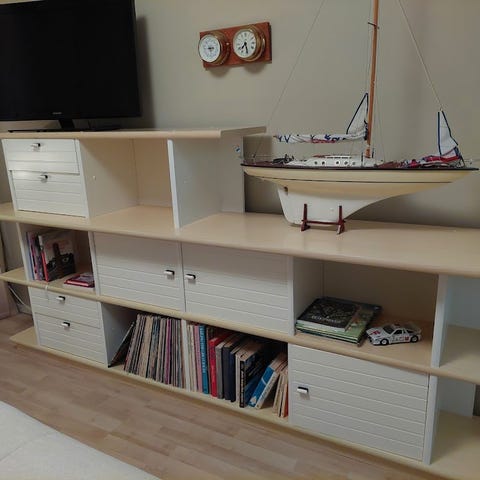 Myydään pois muuton alta. Hyllykkö hyvässä kunnossa, pientä käytönjälkeä löytyy. Hylly on jo irroitettu osiin, joten myydään siis osissa ja se täytyy koota itse. Kokoamisohjeesta kuva tallessa. Tuotteen alkuperäispakkausta tai kuitteja ei ole tallessa.