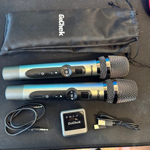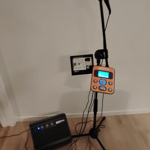 Langaton mikrofoni- ja kaiutinjärjestelmä, jossa on USB-, Bluetooth- ja TF-korttilukutoiminnot. Sisältää kaksi langatonta mikrofonia ja kantohihnan. Kaiuttimessa on säätönupit äänenvoimakkuudelle, kaiulle ja mikrofonille sekä erilaiset toiminnot kuten mikrofoni-instrumentti ja äänitallennus. Kannettava hihna. Kaiuttimen voit kätevästi yhdistää Bluetoothin kautta smart televisioon ja laulaa vaikka YouTubesta tai erilaisista karaoke nettisivuilta lauluja. Myös kantohihna jonka saa tarvittaessa irti. Vähän käytetty.