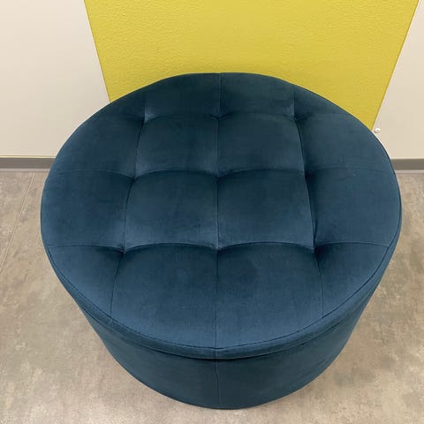Tumman harmaalla punoksella pyöreä rahi, jalkojen lepuutustuki.