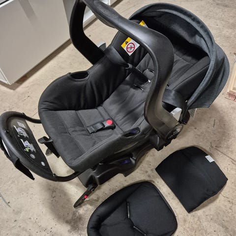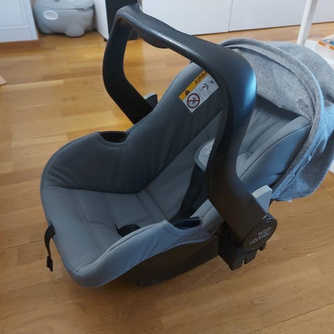 Turvavyökiinnityksellä toimiva Britax Römer BabySafe irrotettava turvaistuinkaukalo ja siihen kuuluva telakka.