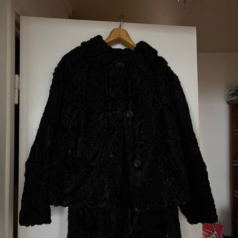 Vanha turkistakki, aitoa turkista. Aikoinaan suurennettu; asia ratkaistu nahkapaloilla. Kulumia paikkapaikoin näkyy, selkäpuoli parempi. Jos ei enää päällepantavaksi...? Niin muodistukseen tai uudelleen käyttöön esim.sisustus ym.tarkoitukseen? Koko n. XL. Vain nouto.